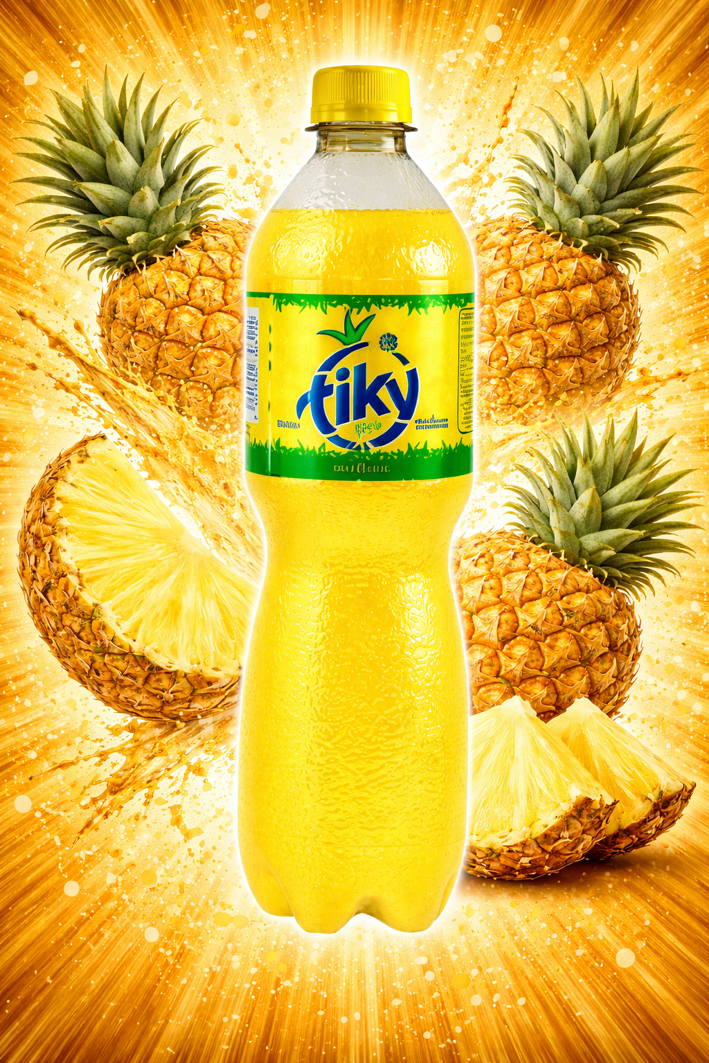 Tiky Piña 600ml te refresca con la dulzura auténtica de la piña en cada burbuja. ¡Destápala y vive el verano todo el año!